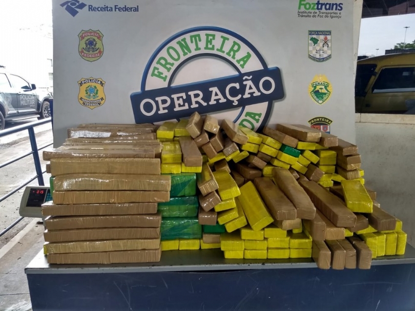 A droga, o veículo e o suspeito foram levados para Polícia Federal de Foz do Iguaçu.