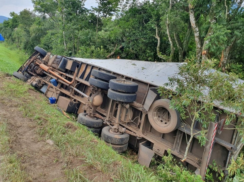 A PRF disse que o motorista seguia sentido Guarapuava, quando perdeu o controle do veículo, cruzou a pista e tombou fora da rodovia. Ninguém se feriu.