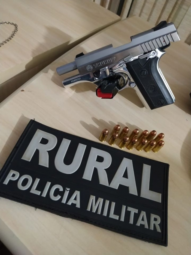 Durante abordagem ao veículo que ele conduzia os policiais apreenderam uma pistola calibre 380 municiada com 13 cartuchos. O armamento estava escondido dentro do forro, no teto da caminhonete. Embora o proprietário tenha apresentado o registrado da arma, ele não permite o porte ao proprietário.