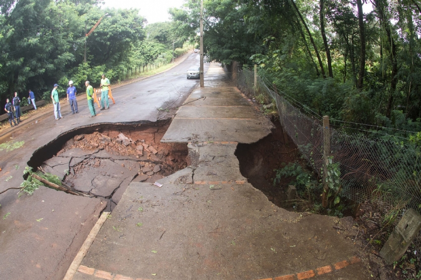 De acordo com a Secretaria de Segurança e Trânsito, a galeria de águas pluviais não suportou a pressão da água. O deslizamento de terra na rua foi causado, segundo a secretaria, pelo rompimento da contenção do bueiro que é utilizado para a dar vazão ao Rio Toledo.