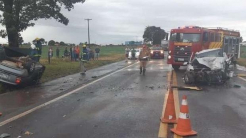 A colisão frontal envolveu um veículo Corsa Classic, com placas de Altônia (PR), e um Vectra, de Santa Terezinha de Itaipu.