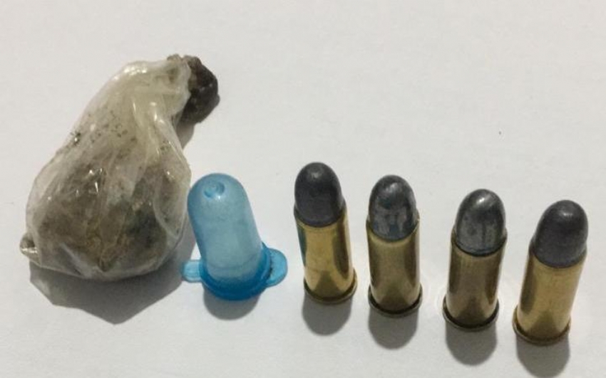 Ao chegar no local, foi dado voz de abordagem e com os abordados nada de ilícito foi encontrado, porém ao verificar veículo foram localizadas quatro munições CBC Cal. 32 intactas, um pino de substância análoga à cocaína e uma bucha de substância análoga à maconha.