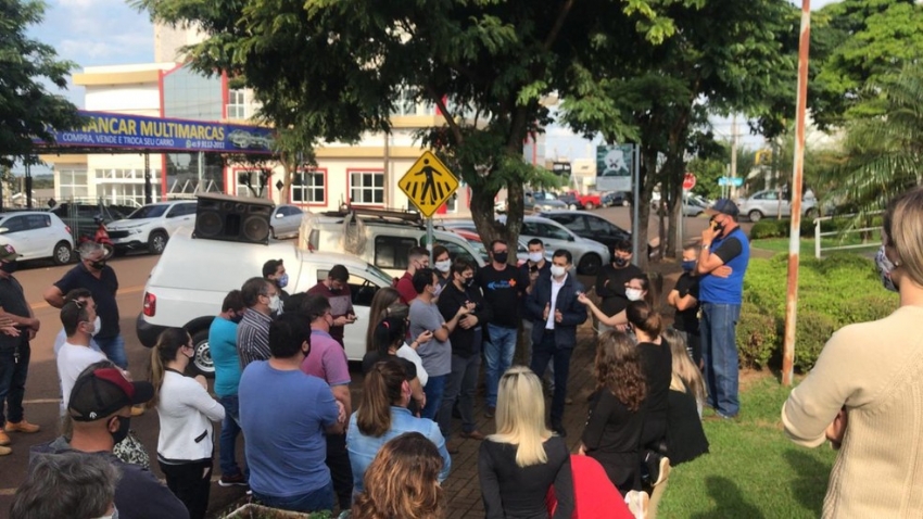 Comerciantes de Corbélia, no oeste do Paraná, fizeram uma manifestação, nesta segunda-feira (6), pedindo a reabertura do comércio. Os manifestantes são contra o decreto estadual que determina o fechamento dos serviços não essenciais, segundo a Associação Comercial.