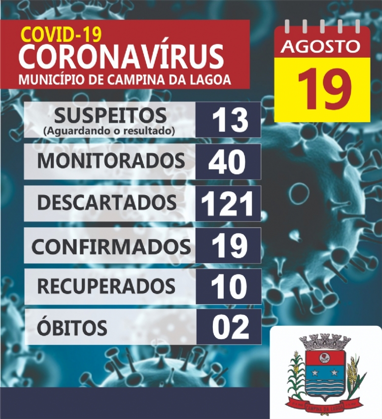 Nesta quarta-feira (19), a Secretaria de Saúde de Campina da Lagoa informou em seu Boletim do Covid-19 o décimo nono caso confirmado para doença no município.