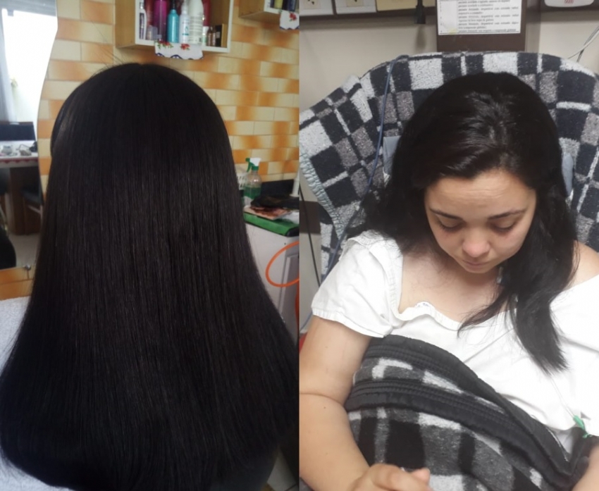 A jovem ainda está sentindo fraqueza e se recupera em casa, no Bairro Parque Verde. Ela está usando um produto para retirar os resíduos do cabelo que apresenta queda intensa.