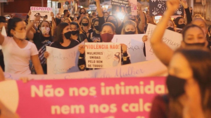 Dezenas de manifestantes se reuniram na noite desta segunda-feira (14), em Pitanga, na região central do Paraná, para protestar em apoio a uma mulher que sofreu agressões por parte do ex-marido em uma praça da cidade. O homem suspeito da agressão é policial militar.