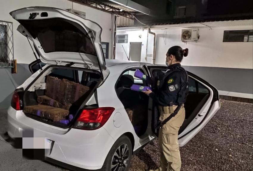A Policia Rodoviária Federal apreendeu, na noite dessa terça (01), 404 kg de maconha transportados em um Chevrolet Onix com placas de Roque do Canaã/ES.