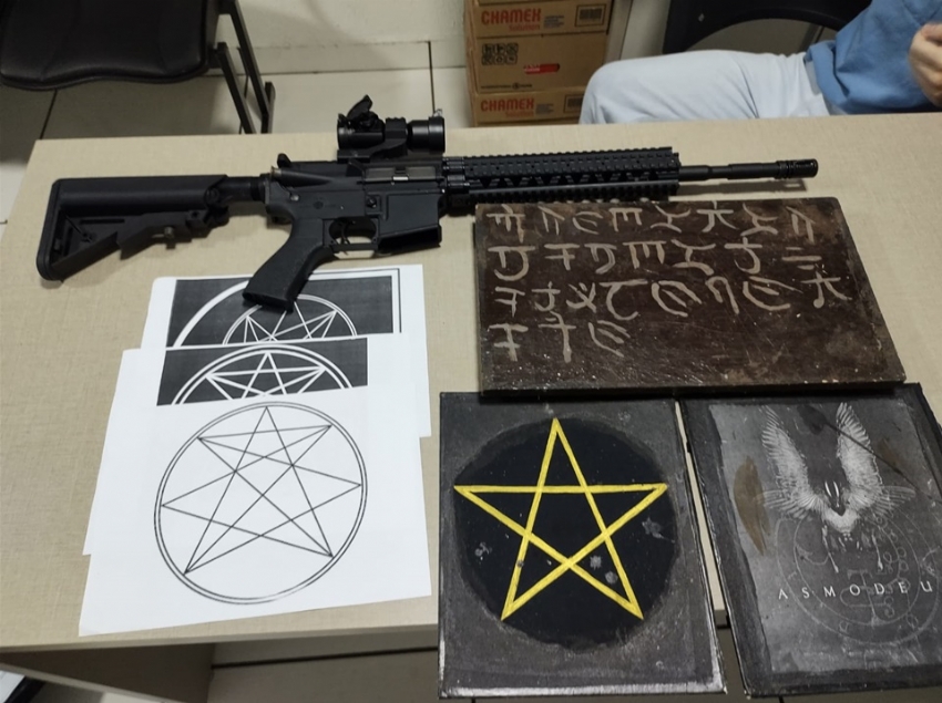 No local, foram localizados símbolos e bandeiras fazendo alusão ao nazismo, além de simulacros de armas de fogo. Também foram aprendidos alguns equipamentos eletrônicos que estavam na posse dele.