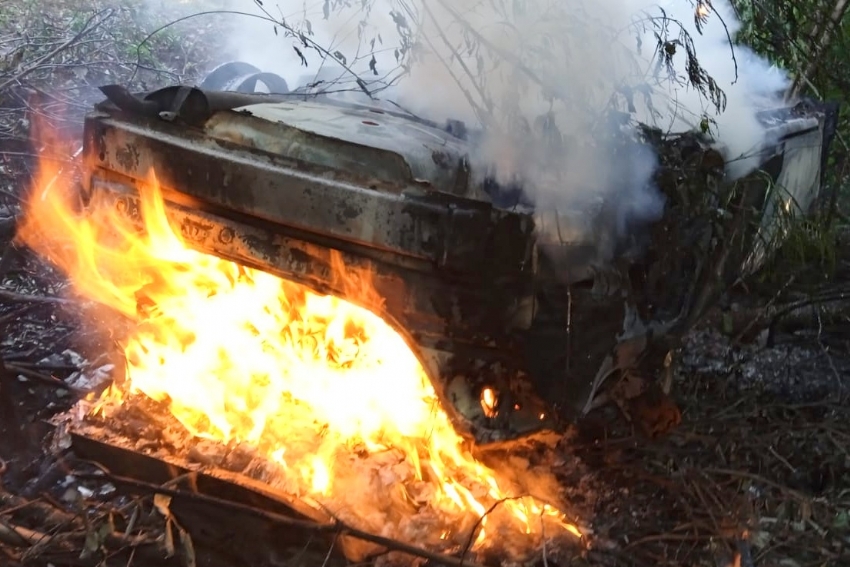 Imagens mostram o carro acidentado, com as quatro rodas pra cima sendo consumido completamente pelas chamas. Um caminhão-pipa do município foi usado para apagar o fogo.