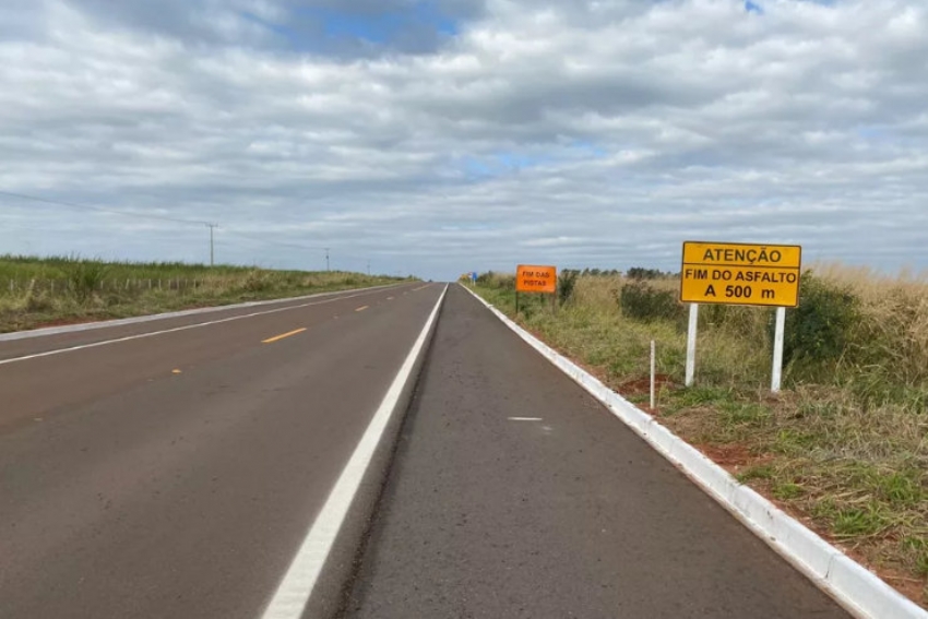 O Departamento de Estradas de Rodagem do Paraná (DER-PR) sinalizou o trecho onde termina o asfalto na Estrada Boiadeira, em Umuarama, na região noroeste do Paraná. A placa que informa as condições da rodovia foi instalada após um acidente que causou a morte de dois policiais.