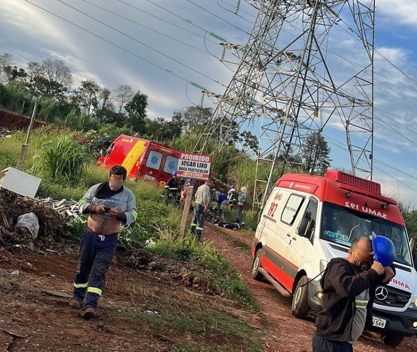 Um trabalhador morreu e três ficaram feridos na queda de uma torre de transmissão de energia elétrica na tarde de quarta-feira (14) em Santa Terezinha de Itaipu, no oeste do Paraná.