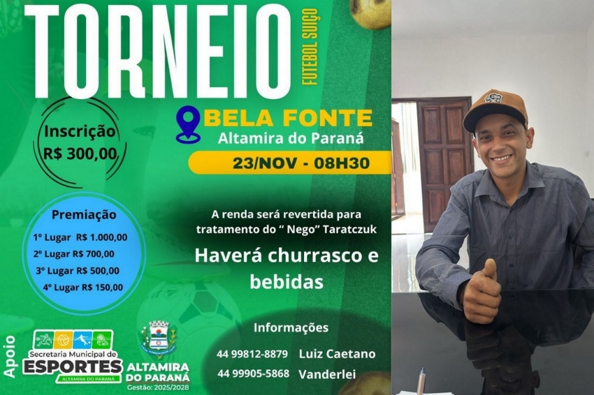 O evento conta com o apoio da Secretaria Municipal de Esportes e da Prefeitura de Altamira do Paraná (Gestão 2025/2028), que destacam a importância de iniciativas que unem esporte e solidariedade.