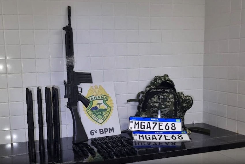 Matelândia (PR) — Uma operação conjunta entre a Polícia Militar, a Polícia Federal e a Receita Federal resultou na prisão de dois homens e na apreensão de um fuzil, peças de armamento e drogas, na noite desta quinta-feira (16), na BR-277, em Matelândia.
