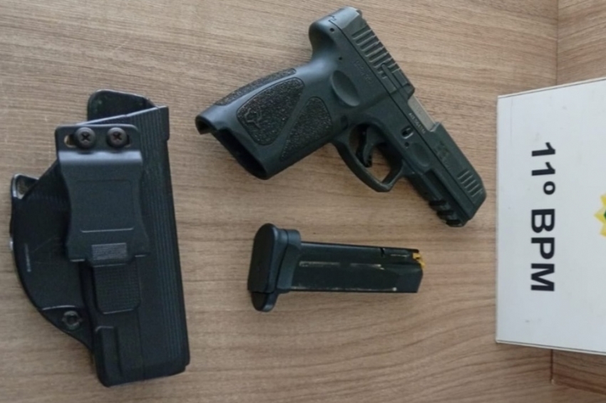 Houve breve tentativa de fuga, mas o carro acabou abordado. No assoalho, próximo ao banco do motorista, os militares encontraram uma pistola Taurus G3 Toro, calibre 9mm.