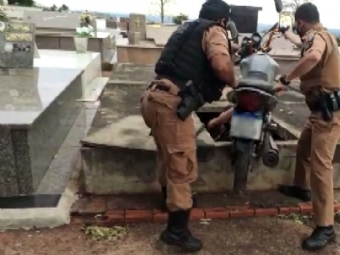Moto roubada é encontrada dentro de túmulo, em cemitério de Cornélio Procópio