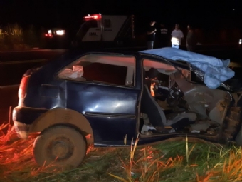 Motorista morre e passageira fica gravemente ferida em batida entre carro e caminhão, em Candói