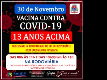 Nesta terça-feira (30), retoma a vacinação para adolescentes em Campina da Lagoa