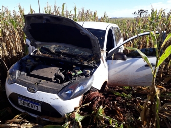 Polícia Militar recupera veículo roubado abandonado em milharal