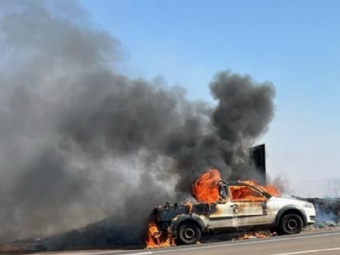 Picape Fiat Strada pega fogo e fica destruída na PR-317, entre Peabiru e Engenheiro Beltrão