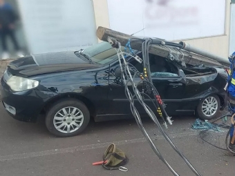 Caminhão enrosca em fios e poste cai em cima de carro no Paraná