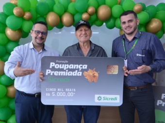 Sicredi Vale do Piquiri Abcd PR/SP entrega prêmio da campanha da poupança a associado de Roncador (PR)