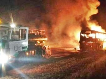 Ônibus que transportava fiéis da Assembleia de Deus pega fogo entre Brasilândia do Sul e Alto Piquiri