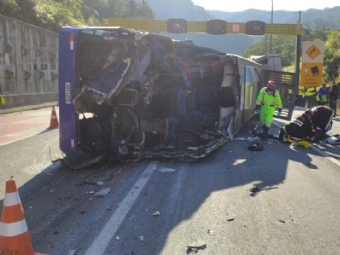 Ônibus com time do Umuarama Futsal tomba, mata duas pessoas e fere ao menos 20 na BR-376, diz PM