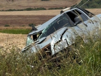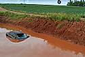 Veículo cai em caixa de contenção em estrada rural de Engenheiro Beltrão