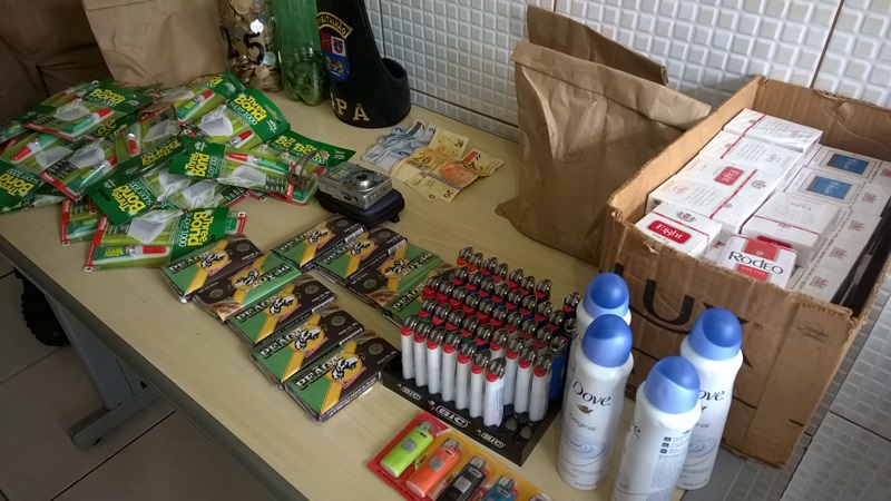 Foi apreendido cigarros, cola, isqueiros, perfumes, entre outros produtos e até um pé de cabra.