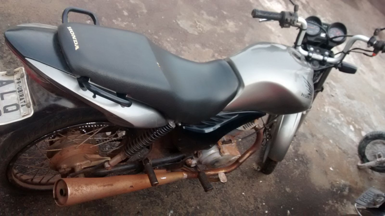 Foi feita a abordagem e busca pessoal e a motocicleta e o condutor conduzidos ao destacamento da Polícia Militar onde foi feita a identificação do condutor e checado a Placa da motocicleta, que após verificada constatou ser de outra motocicleta, uma Honda Bros, ao verificar o número do Chassi foi constatado que a referida motocicleta estava com alerta de furto na cidade de Campo Mourão – Pr, conforme B.O.U 2015/637111.