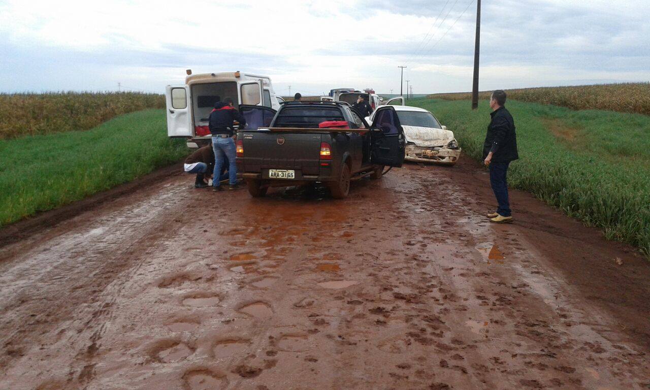 Segundo informações, o GM-Classic transitava sentido Guarani a Mambore e derrapou na estrada e acabou batendo de frente no veículo Fiat-Strada, que seguia no sentido contrário, ainda segundo informações os ocupantes do veículo estrada seguiam para comunidade do Gavião e a pista estava escorregadia e ambos condutores não conseguiram evitar a colisão.