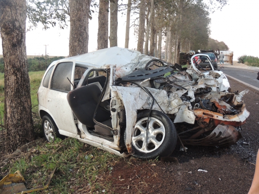 Segundo informou o motorista do caminhão, o mesmo trafegava sentido Toledo, quando ao ter acesso a terceira faixa, o corsa apareceu, invadiu a pista contrária e colidiu violentamente contra o caminhão, sendo que após a batida o motorista do caminhão perdeu o controle, tombou e chocou-se contra uma arvore as margens da rodovia.