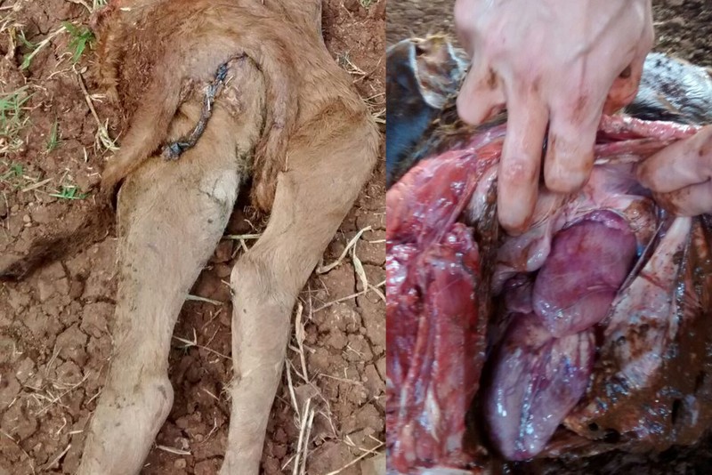 Durante o trabalho de parto foi constatado que o bezerro já estava sem vida ainda dentro da mãe, ao iniciar a retirada do animal notou-se que se tratava de uma bezerra e que a mesma apresentava anomalias em sua formação, o animal tinha duas cabeças perfeitas, dois rabos e dois órgão genitais, após a retirada foi verificado também que o animal possuía dois corações e dois aparelhos digestivos.