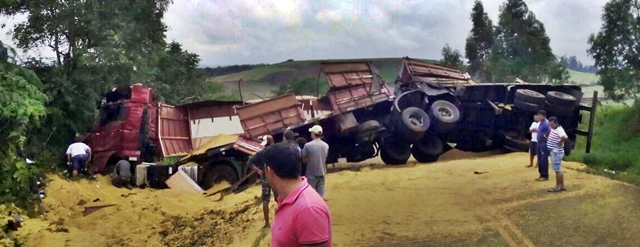 O motorista de um caminhão, placas de Ponta Grossa, que transportava soja, perdeu o controle da direção na PR 462 e bateu em um barranco no trecho entre Roncador e Iretama. A carreta, que estava carregada de soja, ficou retorcida e tombou parcialmente espalhando a carga de grãos na estrada que ficou interditada por algumas horas.