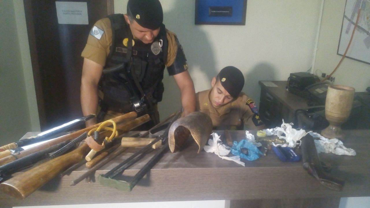 O outro detido de 53 anos disse que os objetos aprendidos são do filho. O homem, que trabalha na roça, conta já ter dados vários conselho ao rapaz que tem 23 anos e várias passagens pela Polícia.