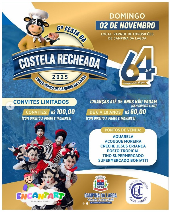 Campina da Lagoa se prepara para celebrar seus 64 anos de emancipação política com o retorno do prato típico “Costela Recheada”, símbolo do sabor, da cultura e da tradição do município.