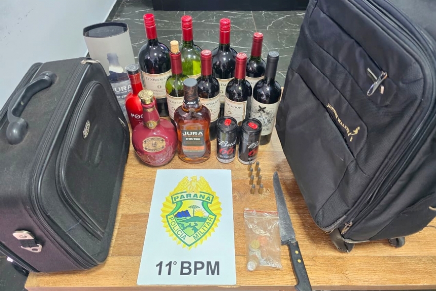 No entanto, ao serem questionados sobre os objetos furtados, um deles afirmou que parte estava escondida no roupeiro, entregando à equipe duas garrafas de vinho e uma faca, que a moradora declarou não lhe pertencer.
