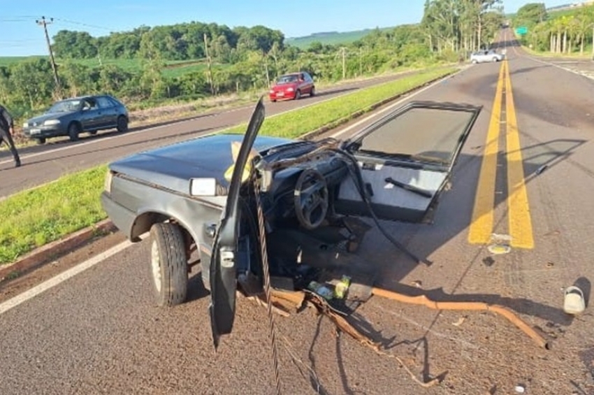Um gravíssimo acidente foi registrado no final da tarde desta quinta-feira (11) na rodovia BR-272, no trevo de acesso ao município de Farol. A colisão foi tão violenta que um dos veículos envolvidos acabou partido ao meio. Uma das vítimas era o ex-vereador e ex-vice-prefeito da cidade, Gentil Lima da Costa, que não resistiu aos ferimentos e faleceu após atendimento médico.