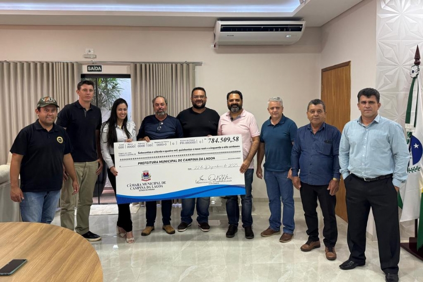 A Câmara Municipal de Campina da Lagoa oficializou a devolução de R$ 784.509,58 ao Executivo na tarde desta segunda-feira (29). O ato foi realizado no gabinete da prefeitura, com a presença do presidente do Legislativo, Ivan da Saúde, acompanhado dos vereadores Neto Cabreira, Celso Passafaro, Leidy Luz, Cal Maurício, Chiquinho, Zé do Bar e do agora ex-vereador Alexandre Magrão.
