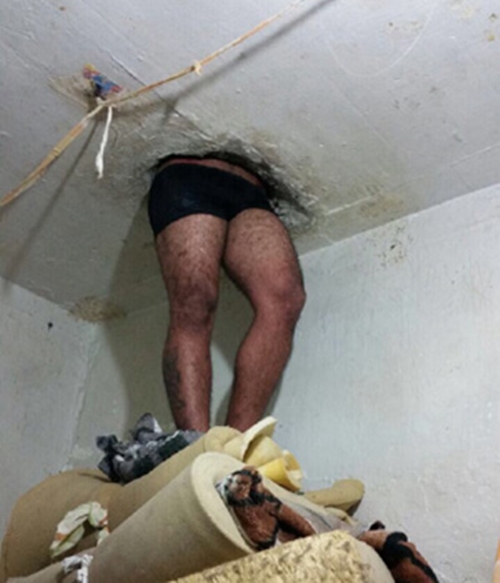 Uma tentativa de fuga em massa da Delegacia sede de Colombo, na região metropolitana de Curitiba, terminou de forma cômica na madrugada desta segunda-feira (27). Por volta das 6h, socorristas do Corpo de Bombeiros foram chamados ao local para serrar o teto do local e tentar ‘salvar’ um preso mais ‘gordinho’, que entalou no buraco feito pelos detidos.