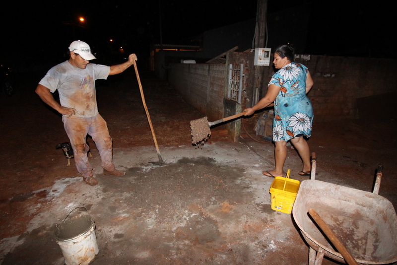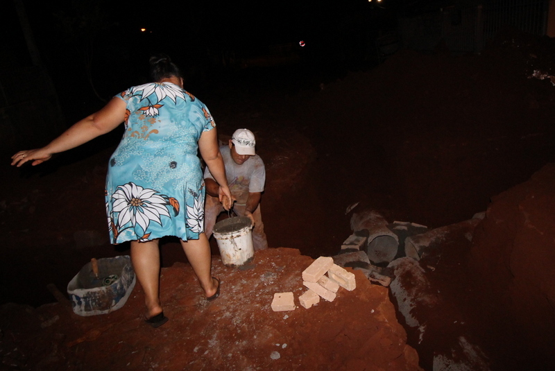 Segundo Josué, no meio da tarde desta quarta-feira os servidores iniciaram a colocação de tubos na rua e como ele está parado sem serviço pediu autorização para o Chefe de Obras do Município Celso Ferreira para fazer as caixas, após receber a autorização ele e a esposa iniciaram os serviços e concluíram por volta das oito horas da noite.