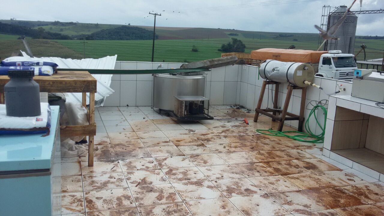 Em uma propriedade na comunidade do Garrincha que foi atingida por fortes rajadas de ventos deixou várias casas destelhadas, até mesmo os barracões onde funcionava uma Ordenhadeira de Leite foi ao chão, a cobertura de um desses barracões foram parar a 100 metros do local, duas vacas acabaram morrendo, rações acabaram estragando na chuva. Segundo Marcelo Favarao, um dos proprietários, os prejuízos podem passaram dos R$ 400 Mil Reais e podem chegar a Meio Milhão de Reais. Apesar dos transtornos e dos prejuízos, não houve nenhum ferido.