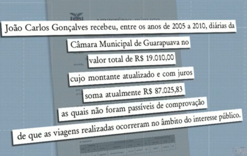 Conforme a denúncia do MP-PR, o vereador recebeu entre 2005 e 2010 mais de R$ 19 mil em gastos em viagens que não tiveram comprovação de interesse público.
