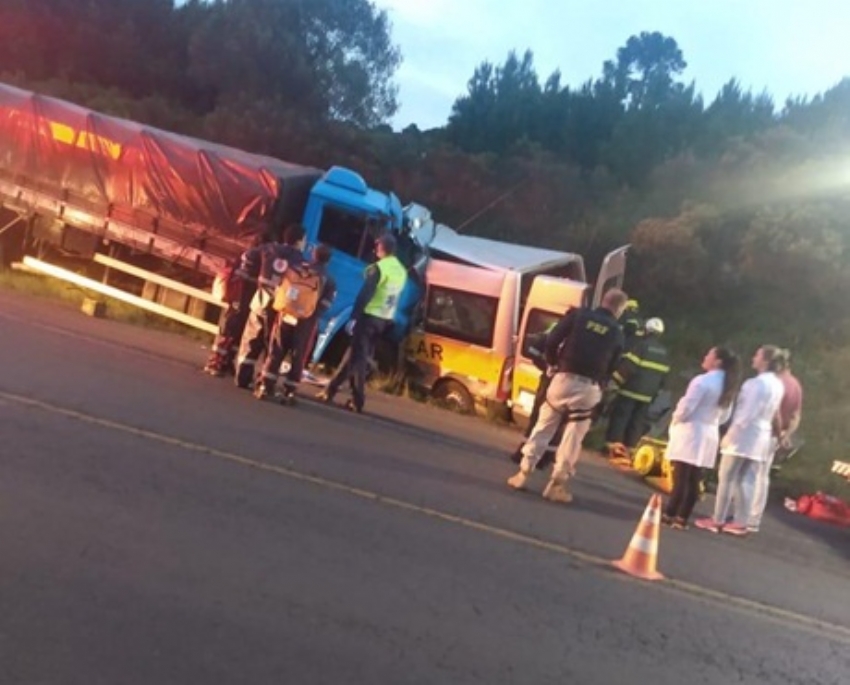 Conforme informações preliminares da PRF, o condutor da van e dois alunos que tinham, entre 16 e 17 anos morreram no local.