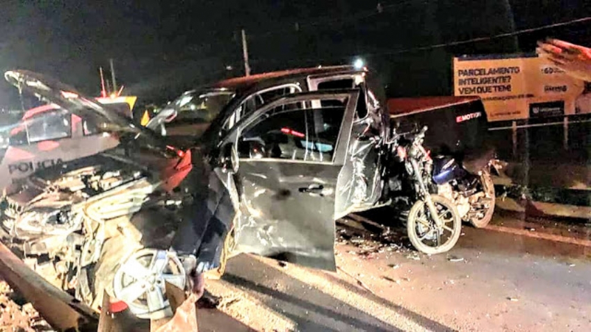 A caminhonete não teria conseguido fazer o contorno no viaduto, bateu em uma grade de proteção e parou no meio da rodovia, o condutor da moto não conseguiu desviar e atingiu a lateral do veículo. O motociclista ficou gravemente ferido.