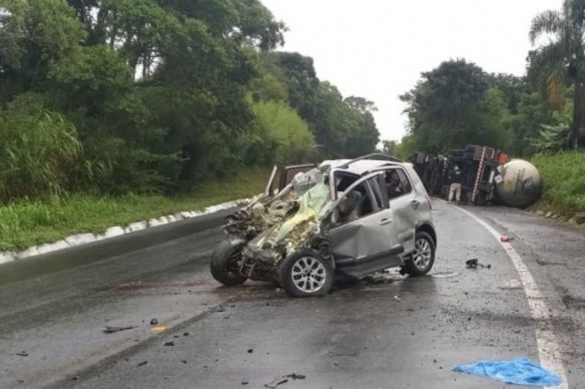 A carreta tem placas de Colombo-PR. A informação é de que o motorista sofreu escoriações leves. O Fox continha placas de Clevelândia-PR. Os nomes dos envolvidos e que vieram a óbito, ainda, não foram divulgados.