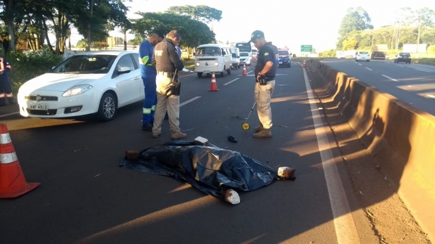 A mulher identificada como I. P. T., segundo informações, tentava atravessar a rodovia em uma parte onde a separação das duas pistas é baixa.