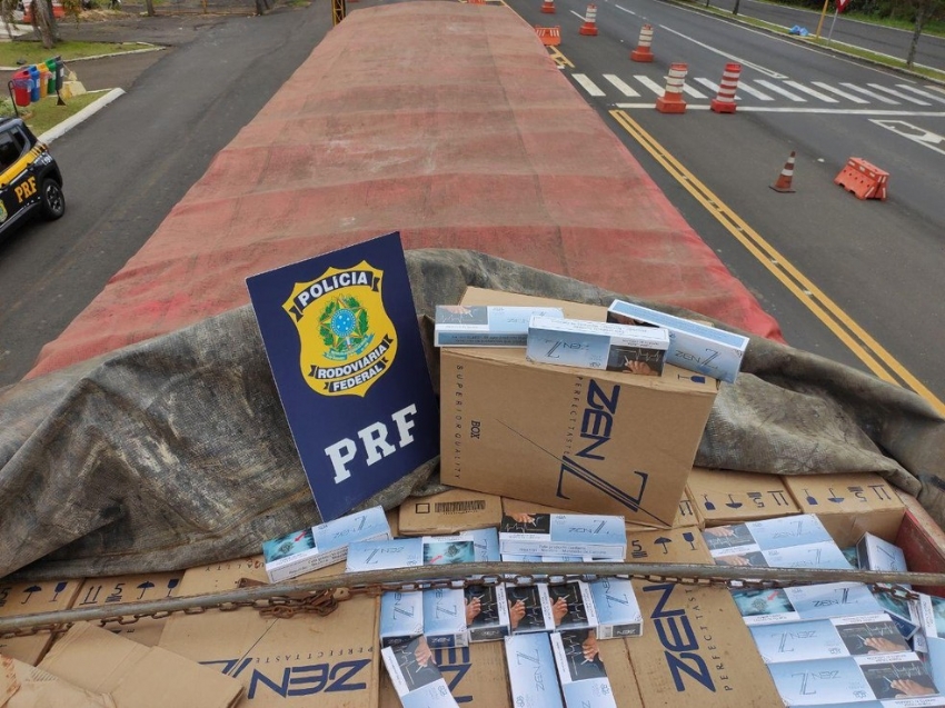 Um homem foi preso suspeito de transportar 325 mil carteiras de cigarros contrabandeados, que estavam escondidas na carroceria de uma carreta, na R-277, de acordo com a Polícia Rodoviária Federal (PRF).