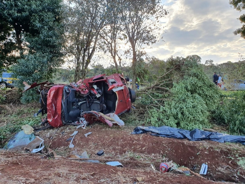Segundo a Polícia Rodoviária Federal (PRF), o carro seguia sentido Cascavel quando o motorista perdeu o controle da direção em uma curva, cruzou a pista e atingiu uma árvore.