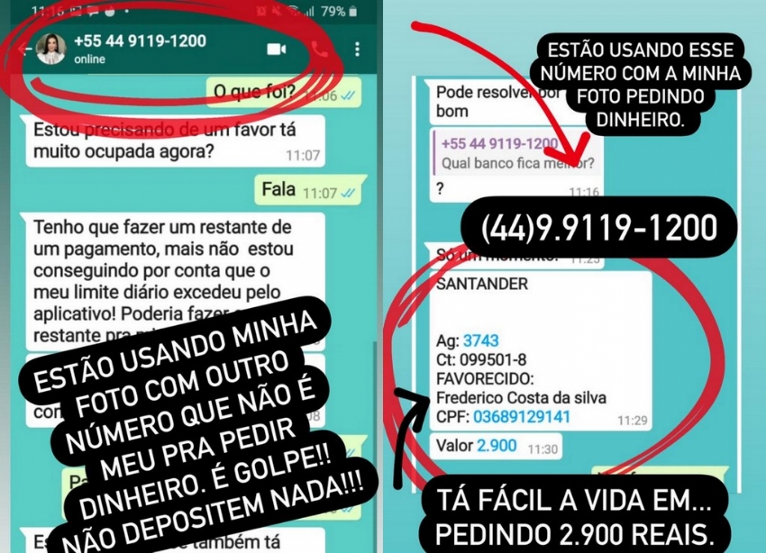 A empresária também publicou avisos em redes sociais para alertar a todos que a conhecem para não cair no golpe.